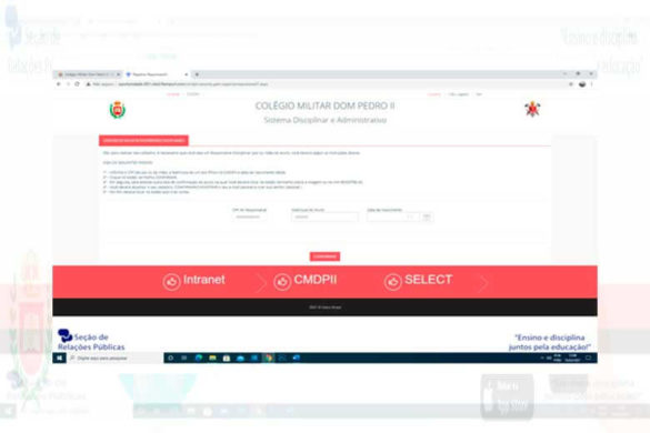 O Comando do Corpo de Alunos do Colégio Militar Dom Pedro II solicita aos pais/responsáveis que atualizem os seus dados, conforme orientação abaixo, com o objetivo de receber as Notificações de Medidas Disciplinares (F.O) através do e-mail cadastrado. Confira o passo a passo a seguir: