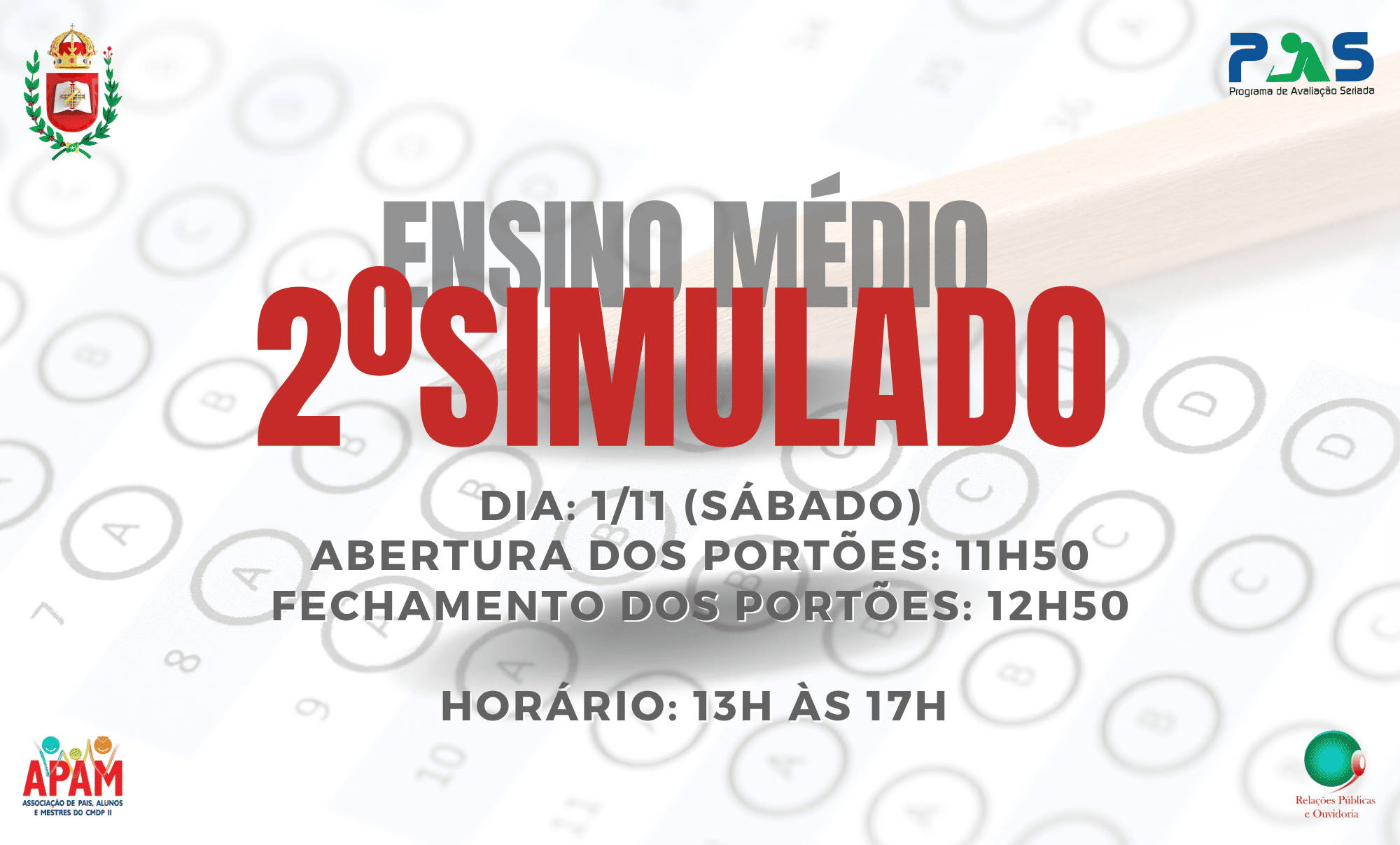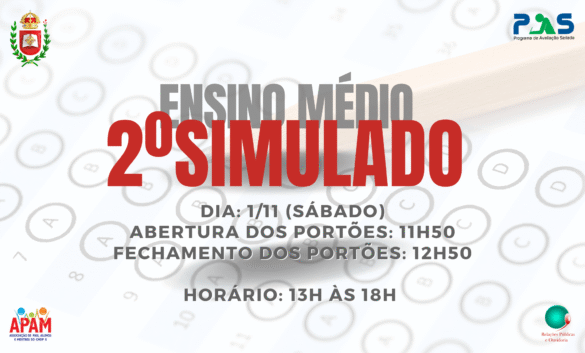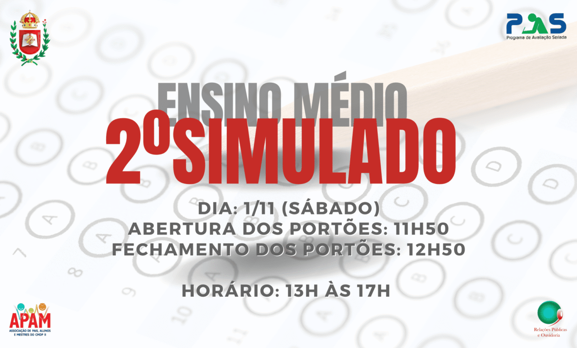 Neste sábado, 1º de novembro, será realizado o 2º Simulado do PAS!