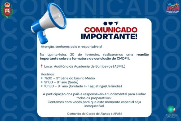 Home Diversos COMUNICADO REUNIÃO SOBRE AS FORMATURAS DE CONCLUSÃO DO CMDPII