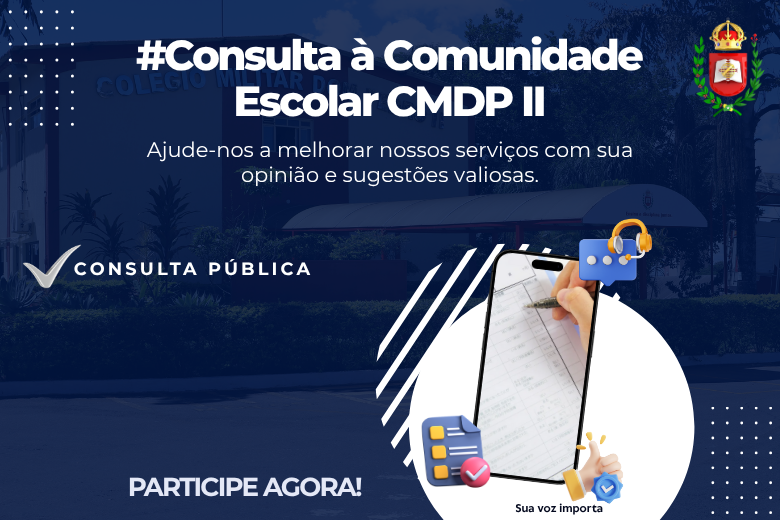 O Colégio Militar Dom Pedro II realiza esta consulta com o objetivo de ouvir o posicionamento da comunidade acerca da proposta de contratação de professores por meio da Secretaria de Estado de Educação do Distrito Federal (SEEDF).