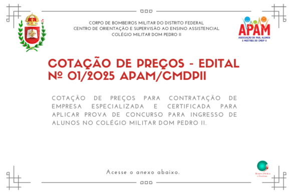 COTAÇÃO DE PREÇOS PARA CONTRATAÇÃO DE EMPRESA ESPECIALIZADA E CERTIFICADA PARA APLICAR PROVA DE CONCURSO PARA INGRESSO DE ALUNOS NO COLÉGIO MILITAR DOM PEDRO II.