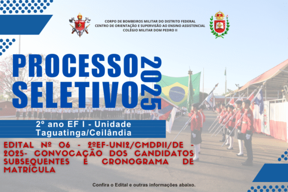 Home Unidade II EDITAL Nº 06 – 2ºEF-UNI2/CMDPII/DE – 2025 – CONVOCAÇÃO DOS CANDIDATOS SUBSEQUENTES E CRONOGRAMA DE MATRÍCULA