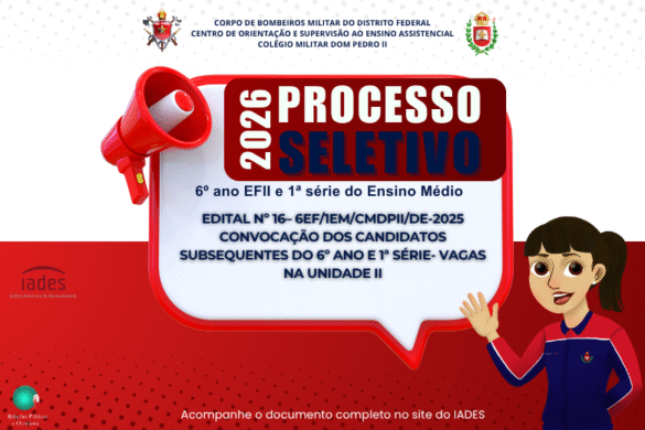 Home Processo Seletivo EDITAL Nº 16 – 6EF/1EM/CMDPII/DE-2025 CONVOCAÇÃO DOS CANDIDATOS SUBSEQUENTES DO 6º ANO E 1ª SÉRIE- VAGAS NA UNIDADE II.