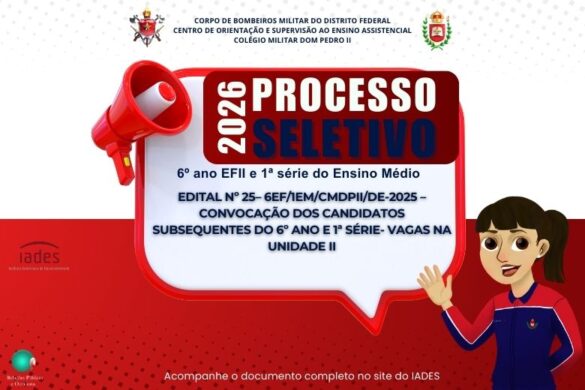 Home Diversos EDITAL Nº 25– 6EF/1EM/CMDPII/DE-2025 –CONVOCAÇÃO DOS CANDIDATOS SUBSEQUENTES DO 6º ANO E 1º SÉRIE- VAGAS NA UNIDADE TAGUATINGA/CEILÂNDIA