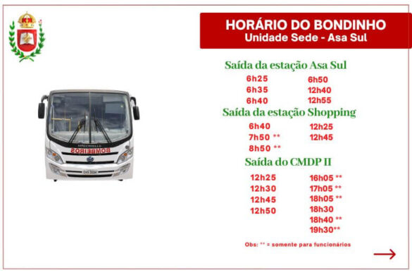 O Bondinho Escolar está à disposição dos alunos e funcionários nos horários estabelecidos. Programe-se para não perdê-lo!