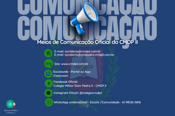 O Colégio Militar Dom Pedro II informa que a comunicação entre escola e família, tanto da Unidade Asa Sul quanto da Unidade II – Taguatinga/Ceilândia, é realizada exclusivamente por meio dos canais oficiais da instituição.