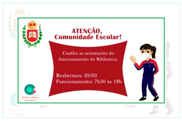 As atividades desenvolvidas pela biblioteca estarão disponíveis para a comunidade escolar, cujos protocolos preventivos à COVID-19 deverão ser seguidos.